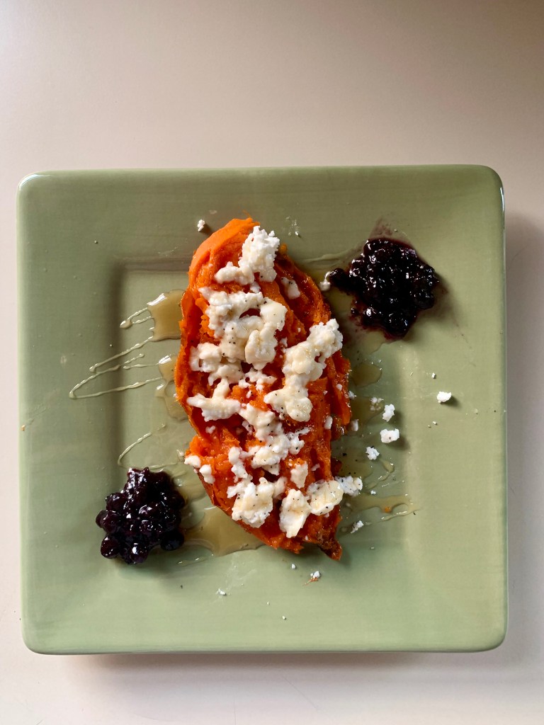 Since I usually don’t make time to preheat my oven and bake a potato in the morning, I wrap the sweet potato in a damp paper towel and microwave it in three-minute intervals, flipping each time. Depending on the size of the sweet potato, it will take 8-10 minutes to cook through. Let it cool slightly before taking it out of the microwave and unwrap. Split the sweet potato in half and with your fork or knife make a cross hatch that way the yogurt and your sweetener of choice can mix into the sweet potato. Top with yogurt, granola, cinnamon, and other toppings you like. Anything that you would put on oatmeal will pair well here. So get creative. This is surprisingly filling and gives me a good level of energy in the morning.