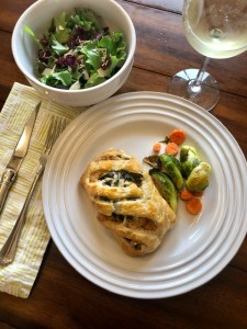 This is a take on the classic beef wellington but instead of beef you will use salmon and in place of pate you will make a spinach and cheese filling. I saved this recipe for last because it requires a bit more prep than the previous recipes but do not let that deter you from trying it. My biggest tip is to make sure you get the puff pastry really thin, about 2 centimeters, and trimming off any excess dough after you fold it over the salmon. If the pastry dough is too thick it may not cook all the way through.