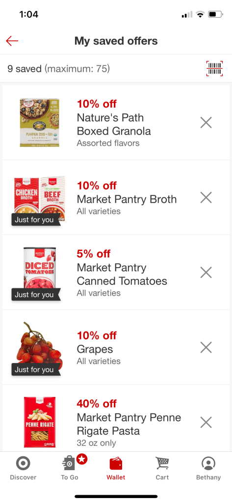- Target Circle – With the Target Circle app I can browse through a list of items with special offers. These offers are not advertised in store so in order to receive the discount, you need to save the offer to a list then apply it at checkout. You can also earn benefits through the app that can be applied to your total. For instance I currently have $0.75 that can be taken off my order total. I love to use this for groceries, cleaning, and health items mostly. I just started using the Target Circle app earlier this year and I have already amassed a savings of $29.78.
