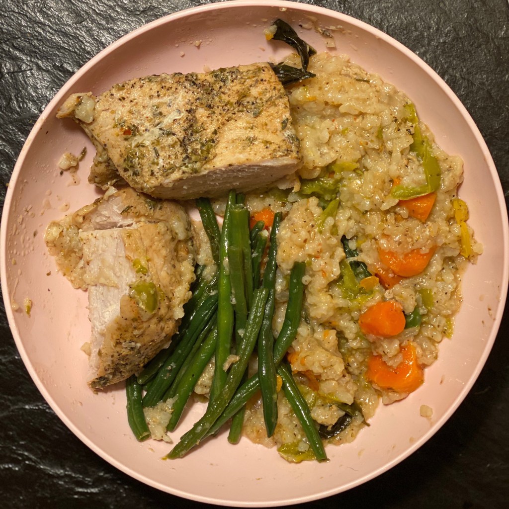 • 1 box of rice or 1 C white rice: seasoned rice like Lundberg Risotto works great