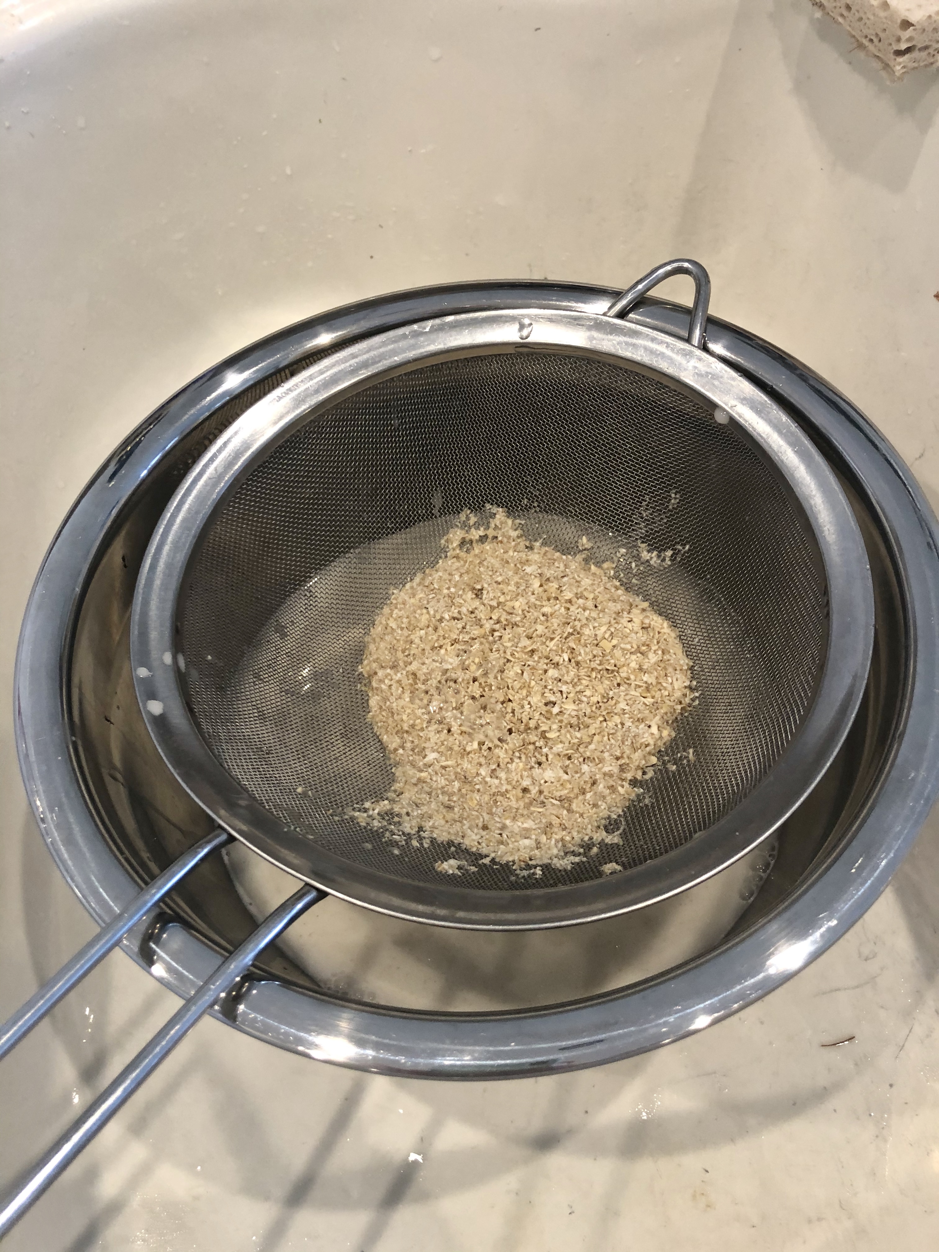 The first time I made oat milk I used a mesh strainer to remove a large portion of the blended oats and then a cloth napkin to strain the rest just as I had done with the almond milk, but it did not work as well for this recipe. The oat milk created a film on the cloth and I was unable to get all of the liquid to strain through. It also made the oat milk come out too watery so I suggest using a cheese cloth or a nut milk bag for straining. Although making oat milk is quick and easy, I still prefer the flavor and consistency of store bought.